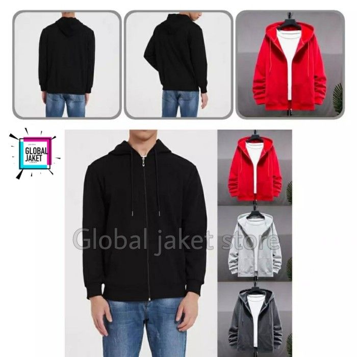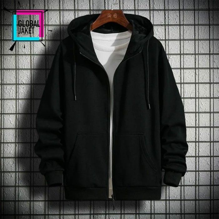 Jaket Sweater Hoodie Polos Pria/Wanita Hoodie Zipper Jumbo Polos - Zipper Hitam 6XL