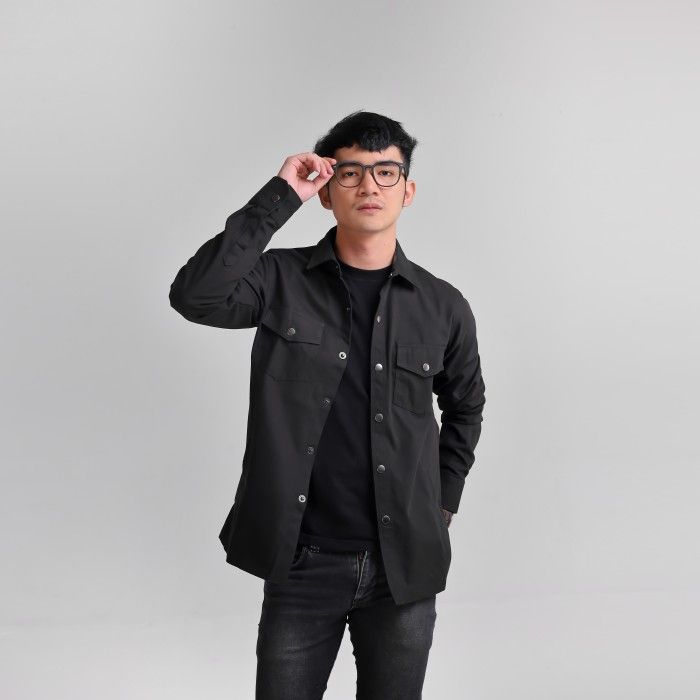 iNeat Myles Overshirt Jacket Black - Outer Jaket Pria - Hitam XL
