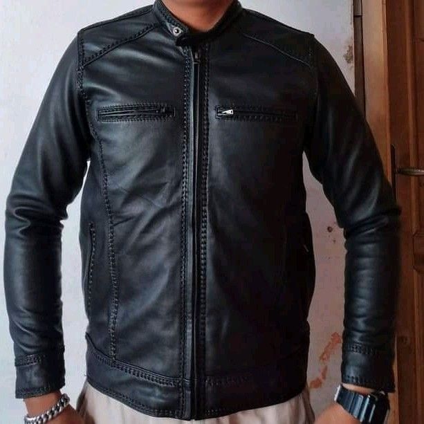 Jaket Kulit Pria Asli Domba M0Del Sulam Terbaru new elegant - Hitam M