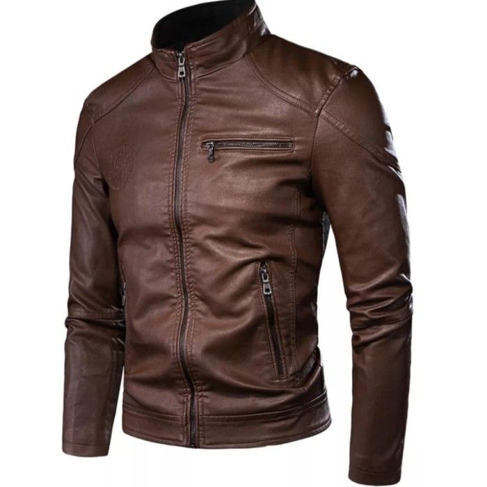 jaket kulit asli - jaket kulit pria. jaket kulit motor domba super - Cokelat M