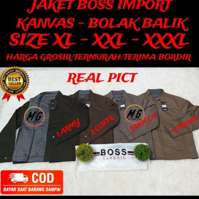 JAKET BOSS IMPORT PREMIUM CLASSIC BOLAK BALIK JUMBO BIG SIZE PRIA LAKI - Hitam XL