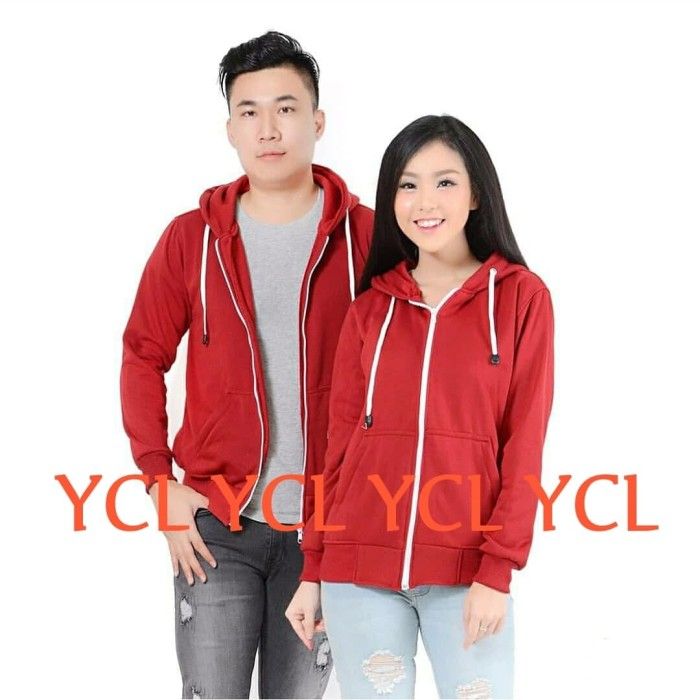 JAKET HOODIE ROYAL ZIPPER UNISEX MAROON UK M - L PRIA & WANITA/SWEATER - Merah M