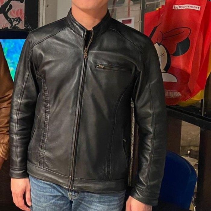 Jaket Kulit Asli kambing/pria garut - Hitam L