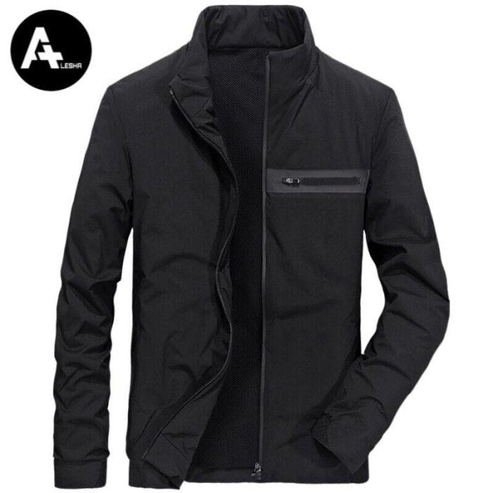 TERBARU... JAKET ZIPPER WATERPROOF PRIA SIMPEL CASUAL - Hitam M
