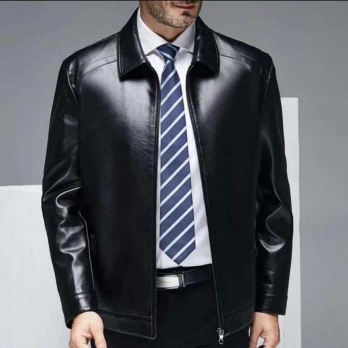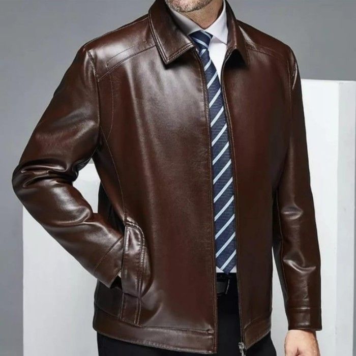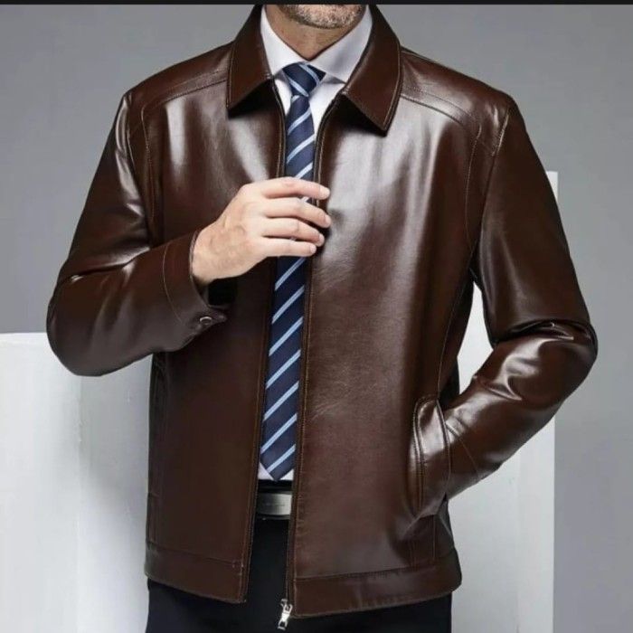 jaket kulit asli pria domba super M0Del semi formal warna coklat tua - Hitam S