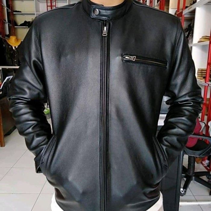 jaket kulit kambing asli jaket kulit pria garut - Hitam S
