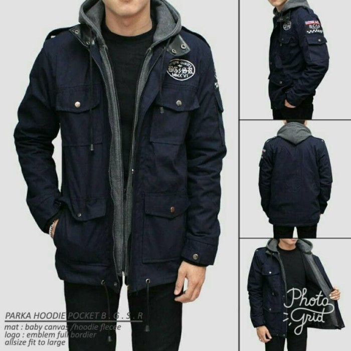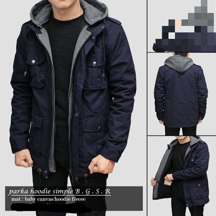 JAKET PARKA HOODIE BORDIR PRIA9rOSIR MURAH BANDUNG - NAVY POLOS M