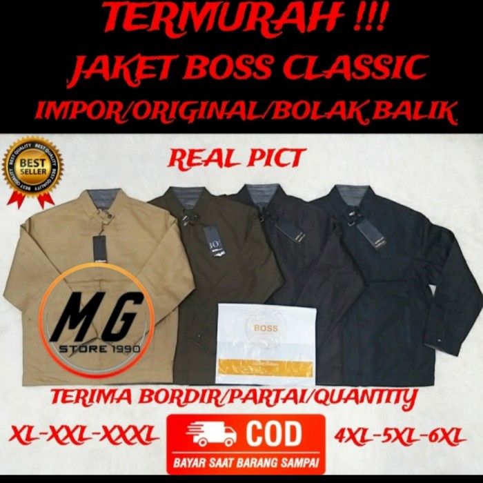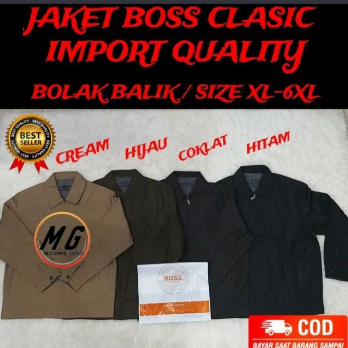 JAKET BOSS CLASSIC IMPORT BOLAK BALIK JUMBO PRIA LAKI LAKI - Hijau XXXL
