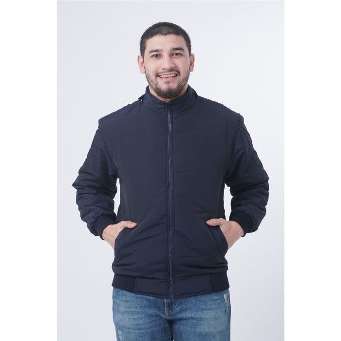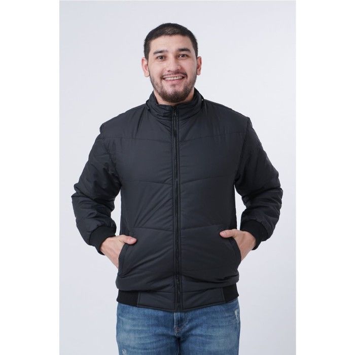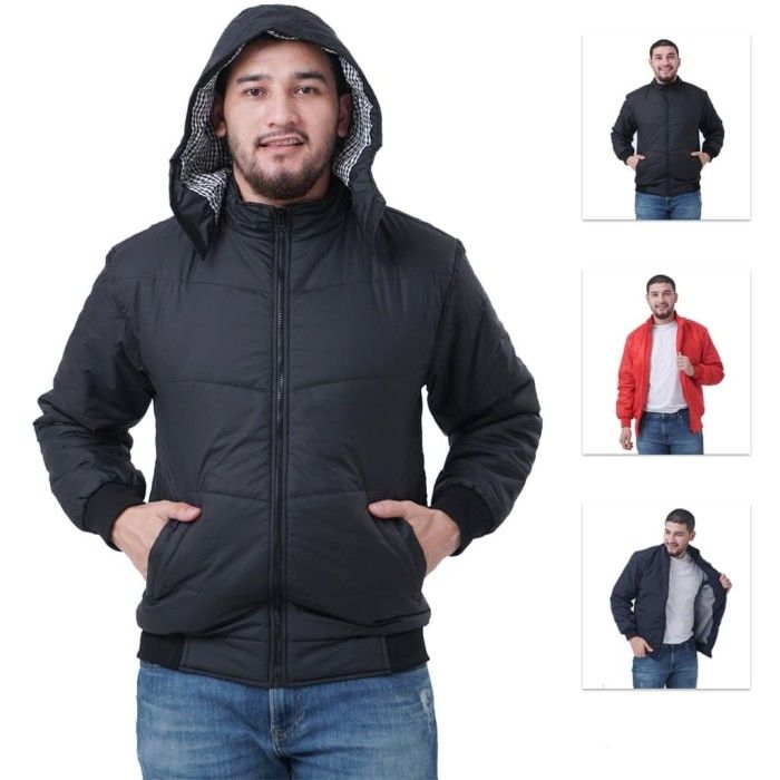 Jaket Terbaru Pria Parasut Tebal Polos Anti Air Windbreaker - Hitam S
