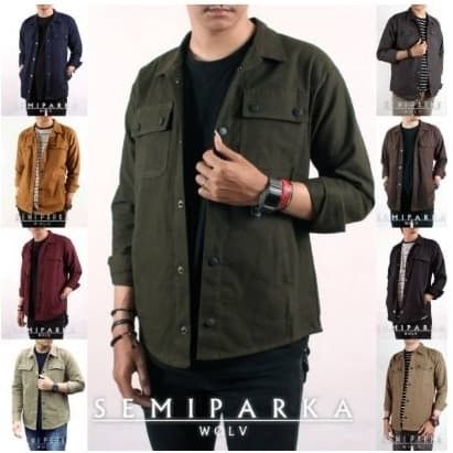 KEMEJA SEMI PARKA CANVAS KANVAS WOLV PRIA JAKET SEMIPARKA BEST SELLER - Hijau L