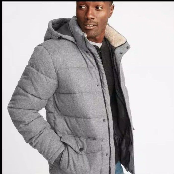 Jacket Winter Pria Old Navy Hoodie Puffer Jacket Branded Original