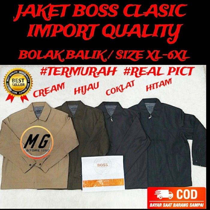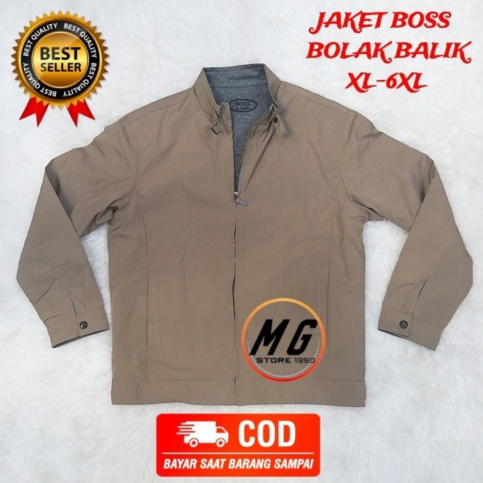 JAKET BOSS CLASSIC ORIGINAL IMPORT BOLAK BALIK JUMBO PRIA LAKI LAKI - Hitam XXXL