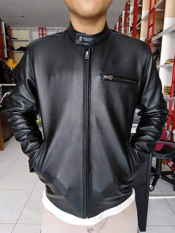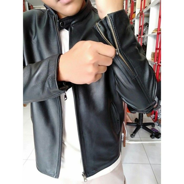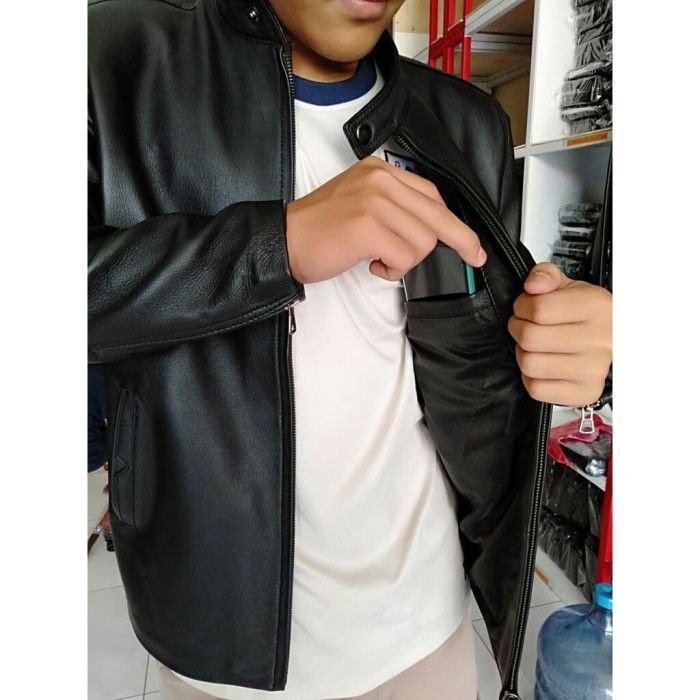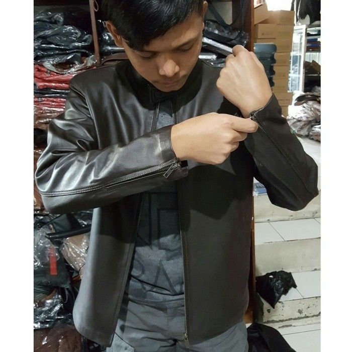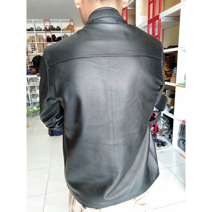 jaket pria kulit asgar leather bisa terlaris bayar di tempat - Hitam M