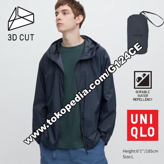 JAKET PRIA POCKETABLE PARKA SAKU UNIQLO JACKET 413975 NAVY - XS