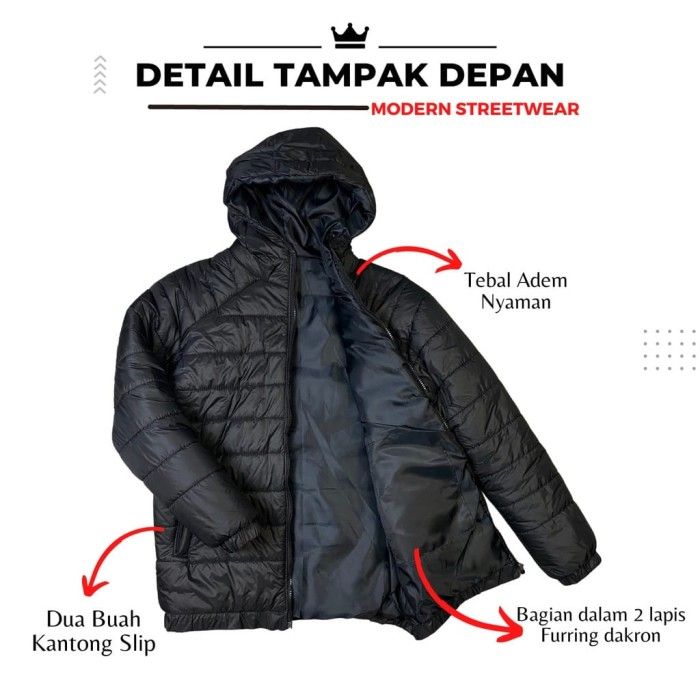Jaket Pria Puffer Tebal Waterproof Touring Sunmori Motor Windbreaker - Hitam M/L