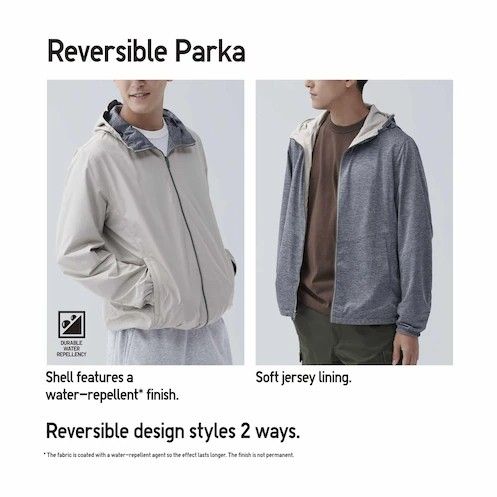 UNIQLO Jaket Pria Parka Reversible Black Hitam