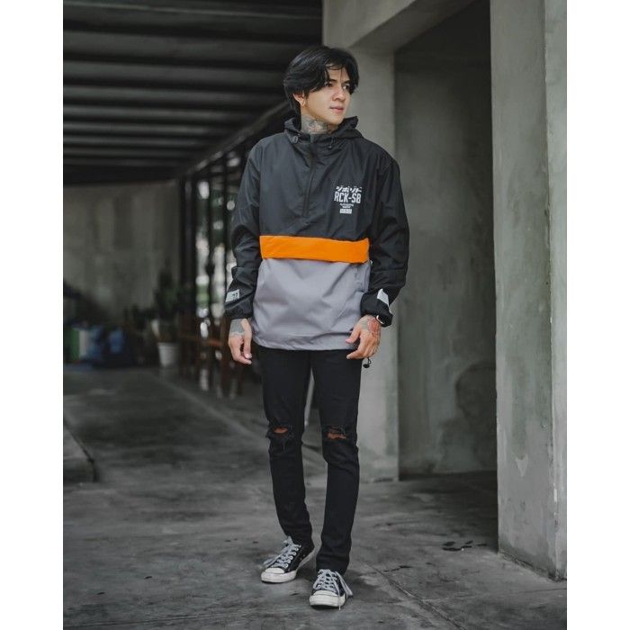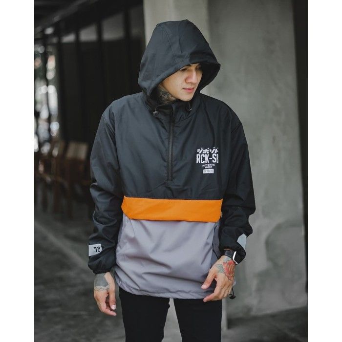 Jaket Pria Waterproof Jaket Windbreaker Salvio Hexia Cagoule Anti Air - RCKSB HITAM ABU