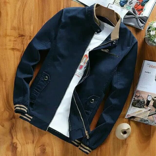 JAKET BOMBER PRIA CANVAS PREMIUM ORIGINAL COWOK CASUAL KEREN TERMURAH - Navy