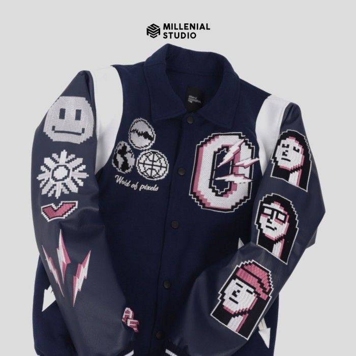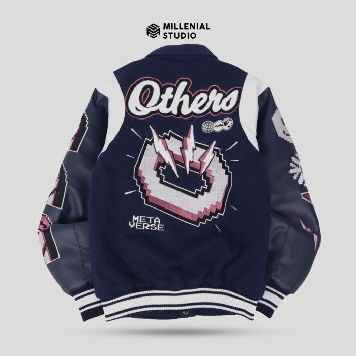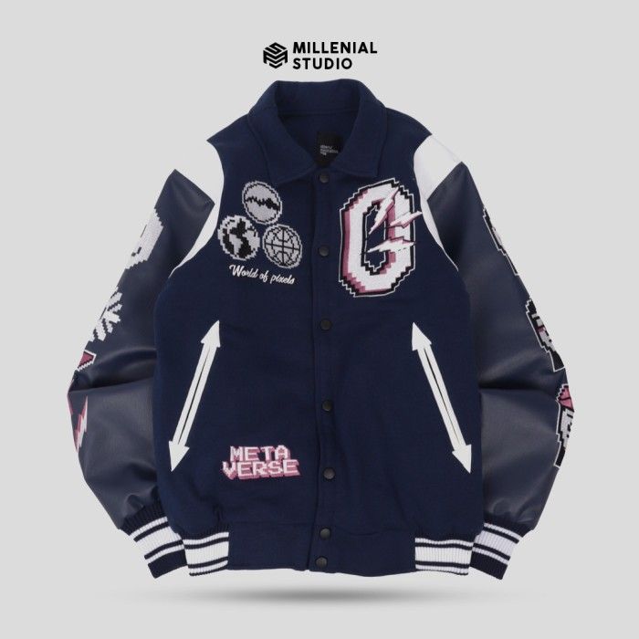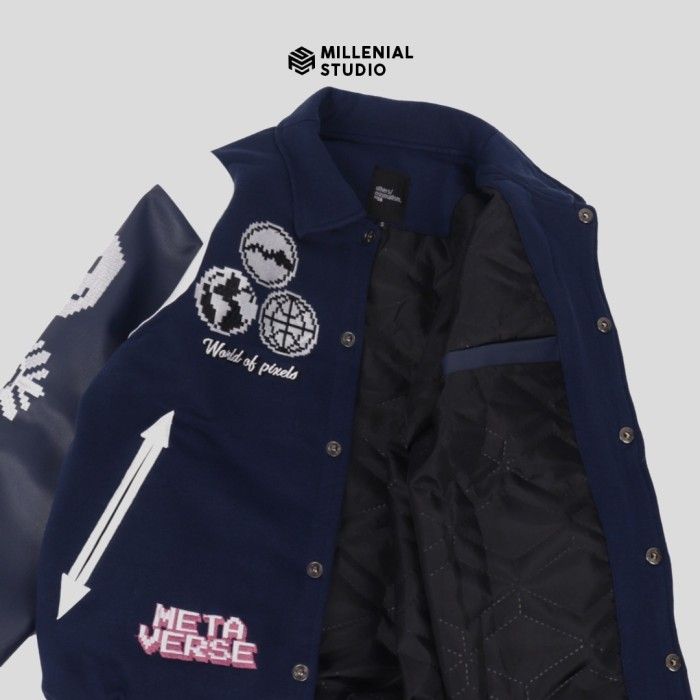 Varsity Jacket Original Metaverse Bordir Jaket Varsity Pria Unisex - Metaverse Navy L