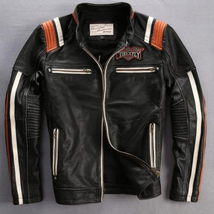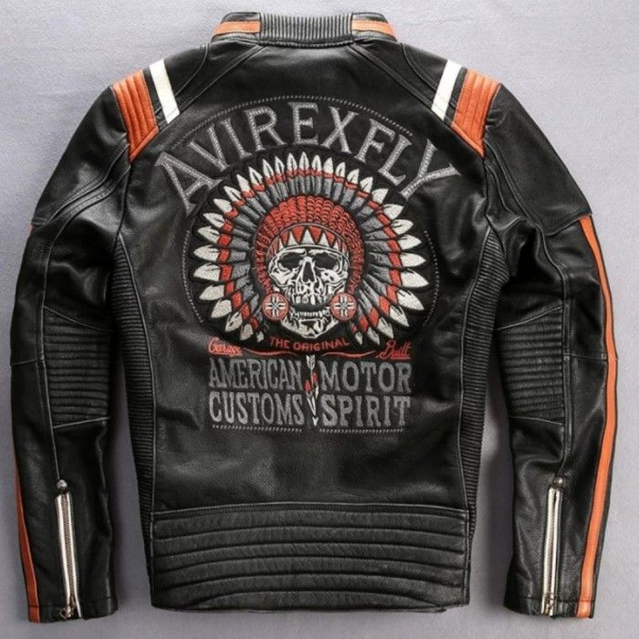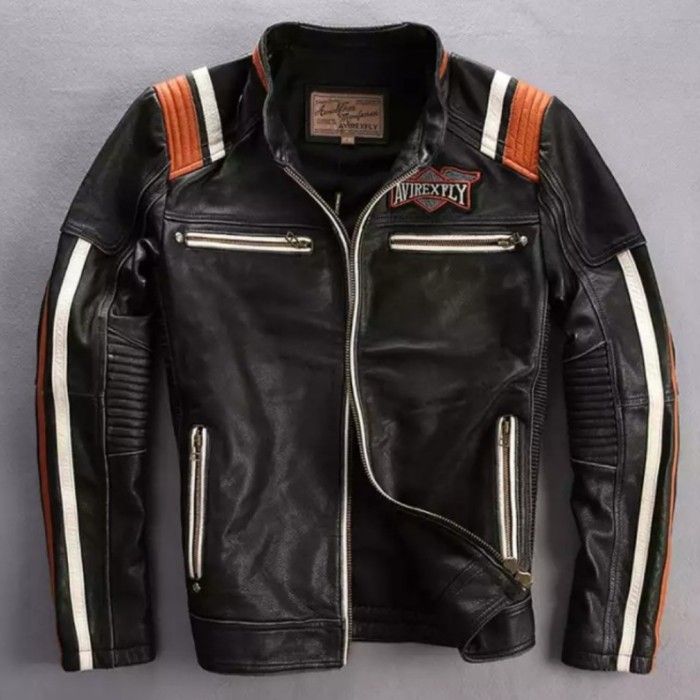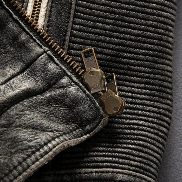 Jaket motor kulit pria bahan kulit domba premium - Hitam S