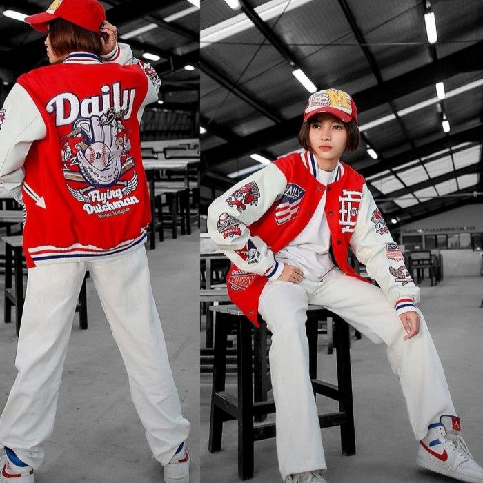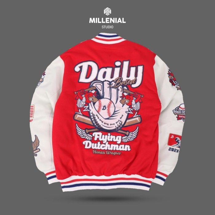 Varsity Jacket Original Wagner Red Bordir Varsity Kulit Sintetis Pria - Wagner Red M