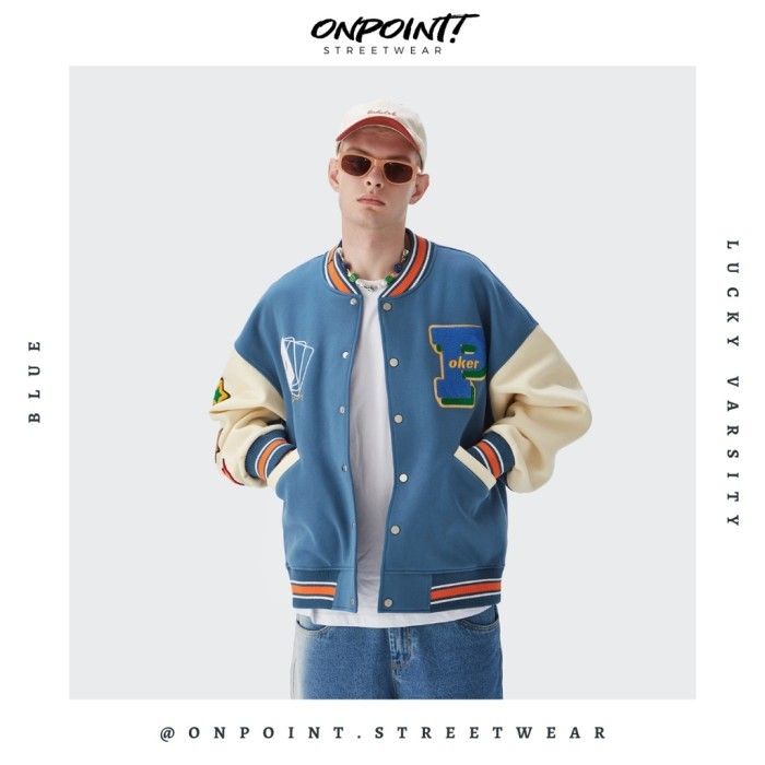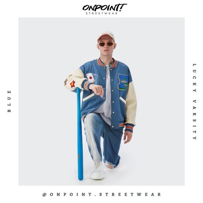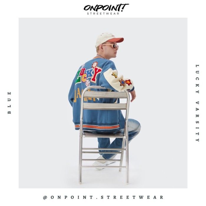 Lucky varsity - jaket pria jaket varsity oversize gaya korea - Biru M