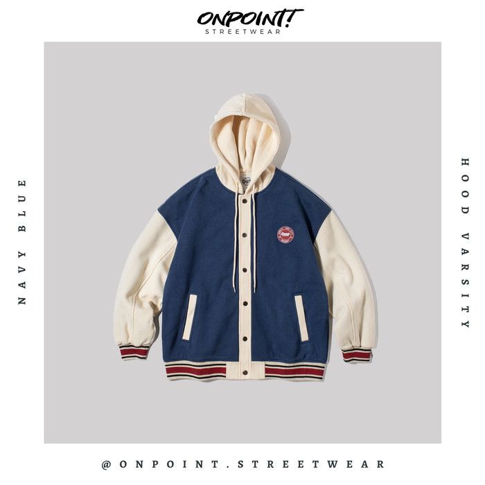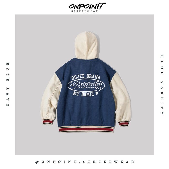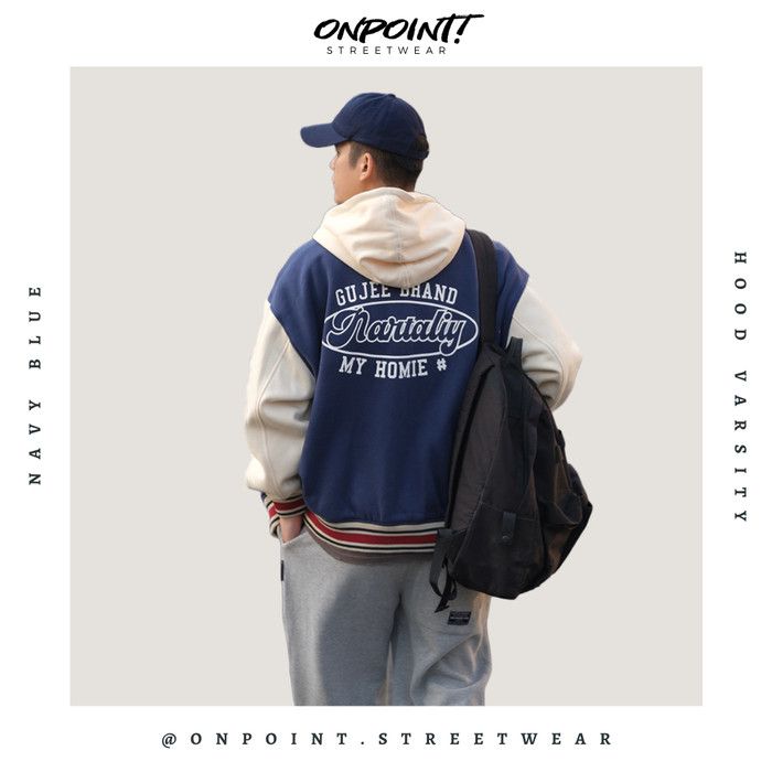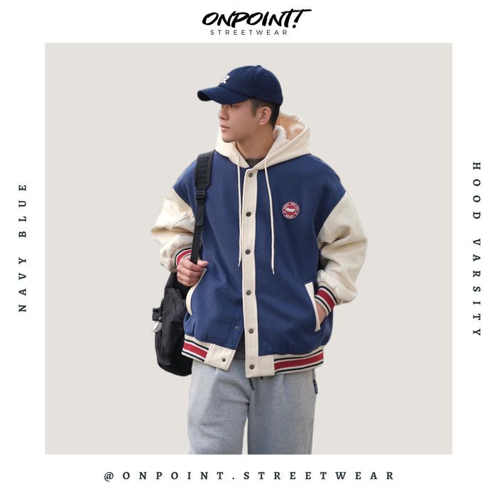 Hood Varsity - jaket pria jaket varsity pria oversize - Biru XL