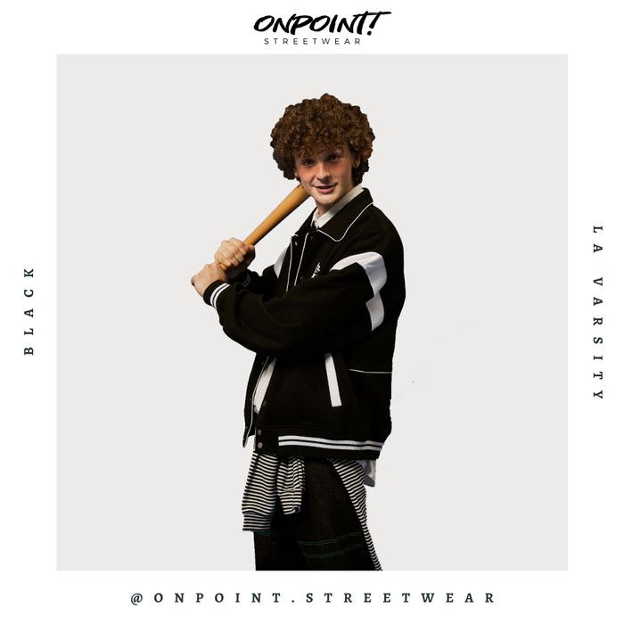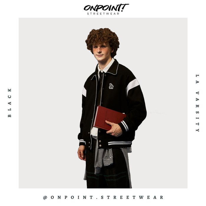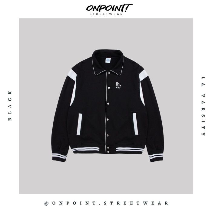LA Varsity black - jaket pria jaket varsity pria oversize - Hitam L