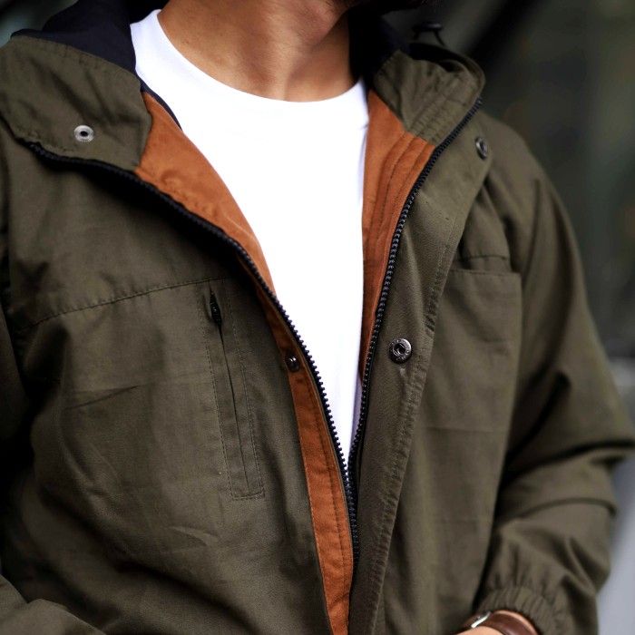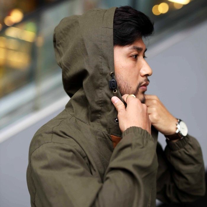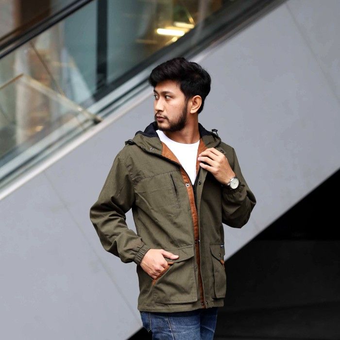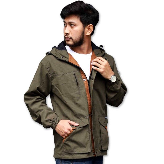 Nookly - Jaket Parka Pria Olive Jaket Outdoor Jaket Hoodie - M