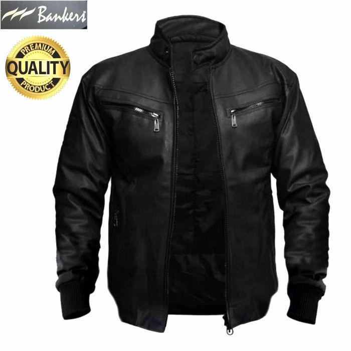 Bankers Jaket Semi Kulit Polos Pria Premium BKR041 jacket Motor Bikers - Coffe L