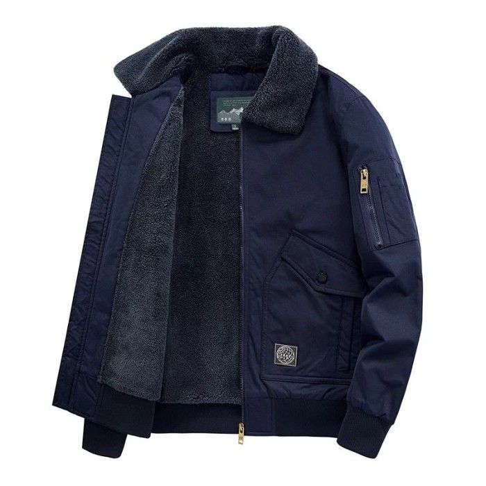 Jaket Bomber Bulu Pria Import Musim Dingin Mantel Pria Tebal Big Jumbo - Abu Tua M