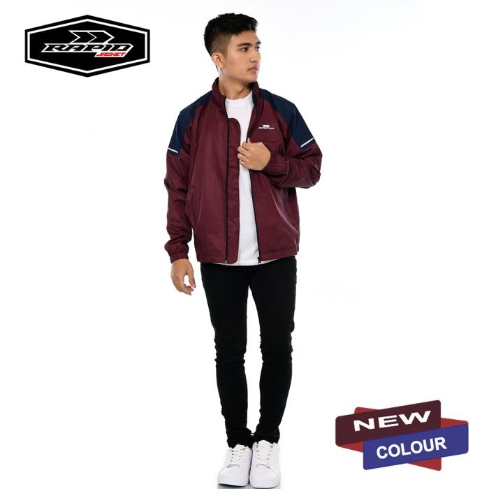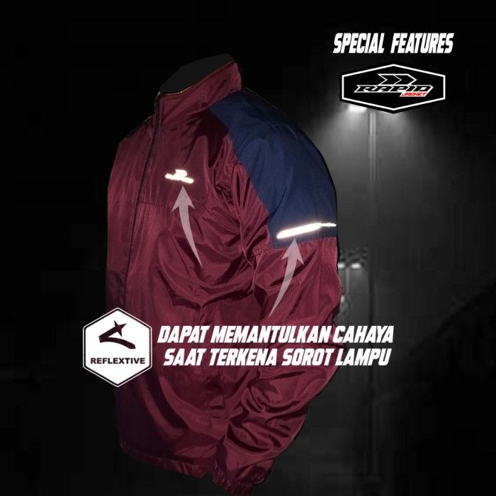RAPID Fortune jaket motor pria murah keren riding harian reflektif - Maroon/Navy S/M