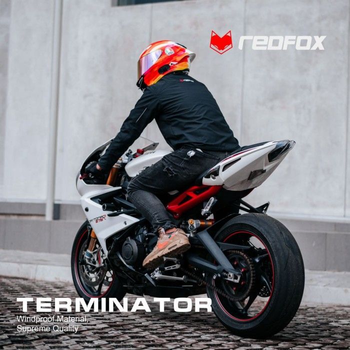 Jaket Motor Pria Premium - REDFOX TERMINATOR - Riding Reflective - M Hitam