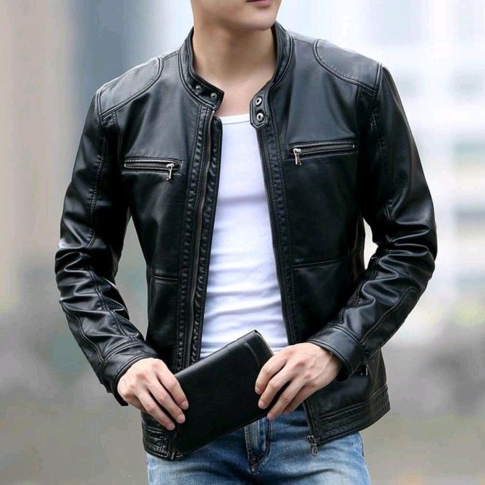 jaket kulit pria asli domba garut kualitas super M0Del kasual - Hitam S