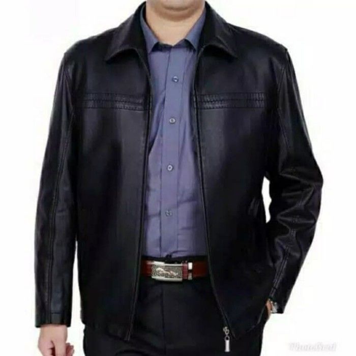 jaket kulit pria asli bahan domba super hitam - Hitam S