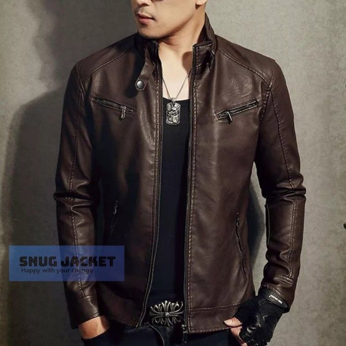 jaket kulit domba jaket kulit asli jaket kulit kasual jaket kulit pria - Cokelat S
