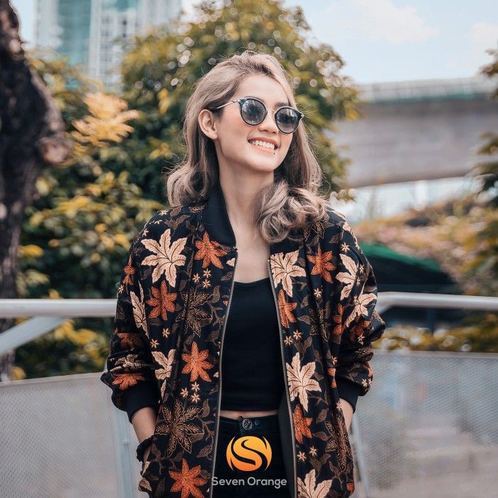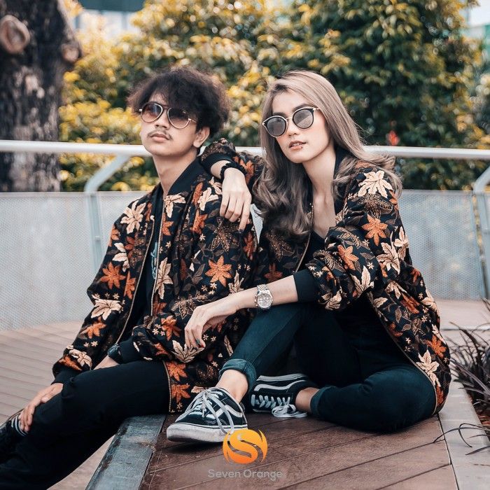 Jaket Bomber Batik Pria & Wanita Multifungsi Casual - Formal - Black - Hijau L