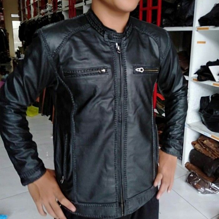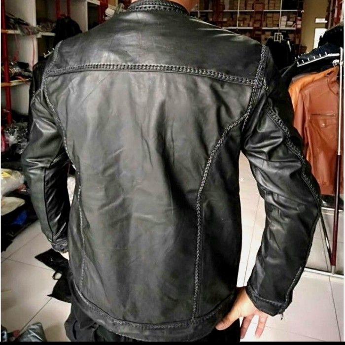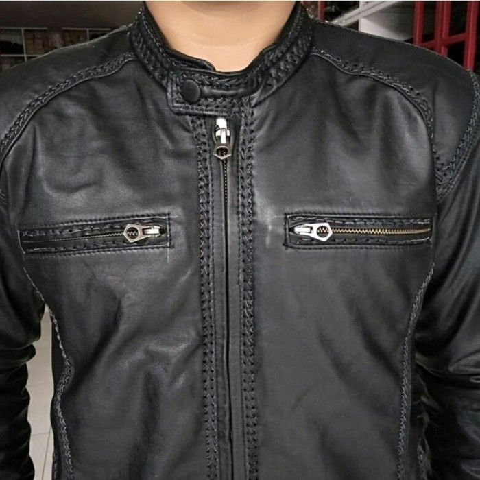 jaket kulit sulam pria asli100 original kulit asli - Cokelat L