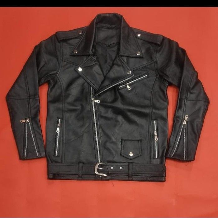 jaket kulit pria kulit asli domba M0Del ramones - Hitam L