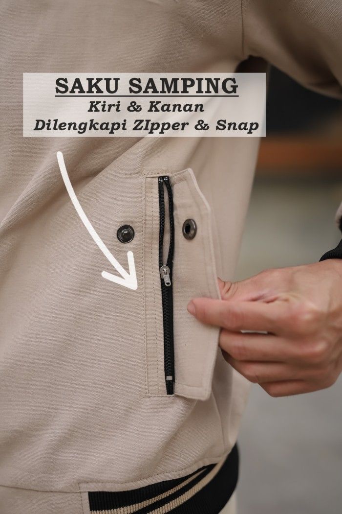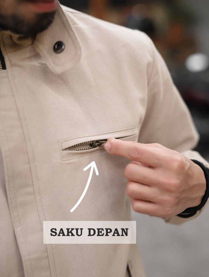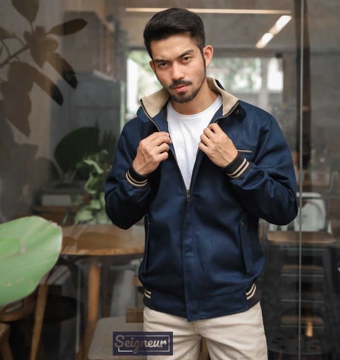 Jaket Canvas Premium Seigneur Navy | Jaket Pria - Cream L