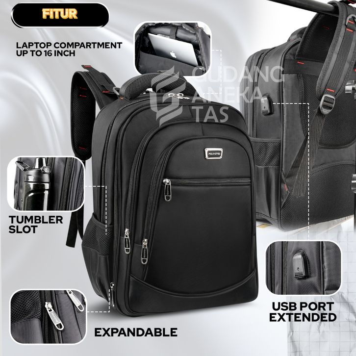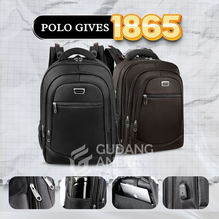 Tas Ransel Polo Gives Tas Ransel Kerja Tas Sekolah Anak Laki Laki Original Import 18 Inch Free Kabel USB + Raincover