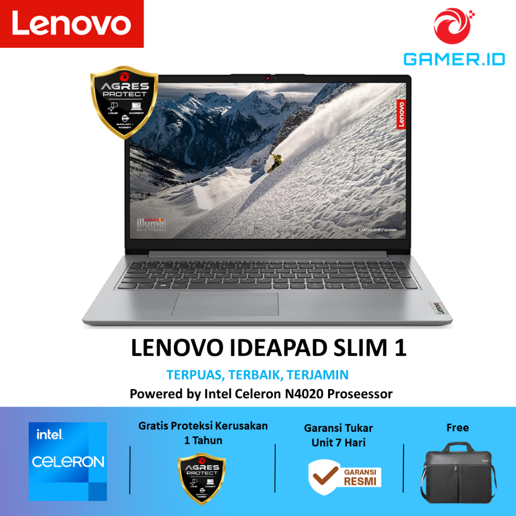 GAMER ID LENOVO IDEAPAD SLIM 1 14 INTEL CELERON N4020 8GB 256GB/512GB SSD DOS/WIN11 14" HD GREY - LAPTOP DOS TANPA OS
