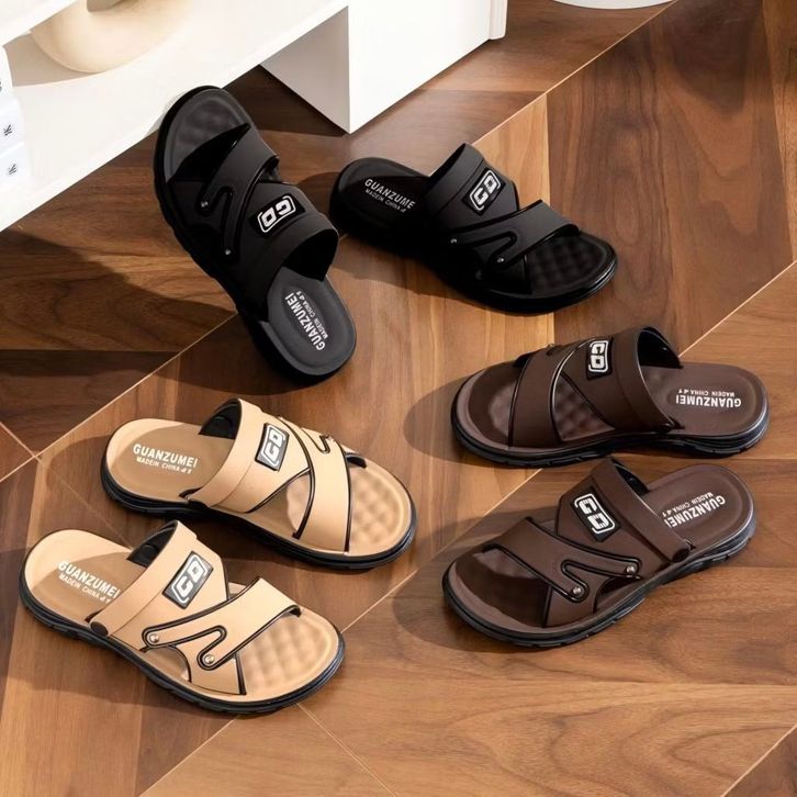 SANDAL KULIT PRIA ANTI PUTUS TERBARU 2025 GO SANDAL SLIDE STYLISH KEKINIAN SANDAL SLOP VIRAL PRIA