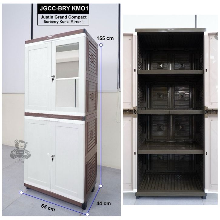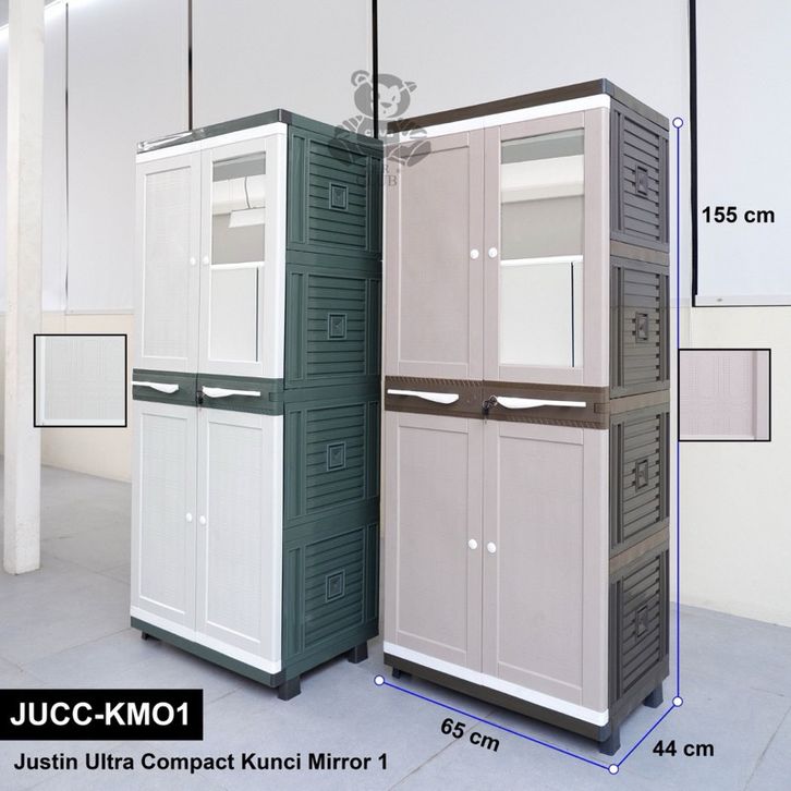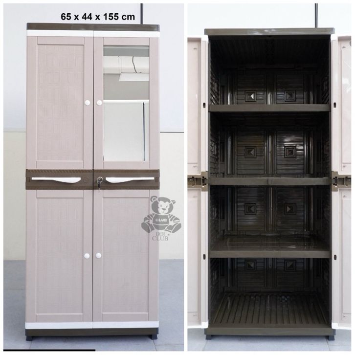 Lemari Pakaian Plastik Jumbo Susun 4 Full Kunci Minimalis Cermin