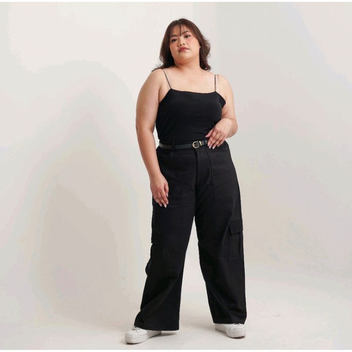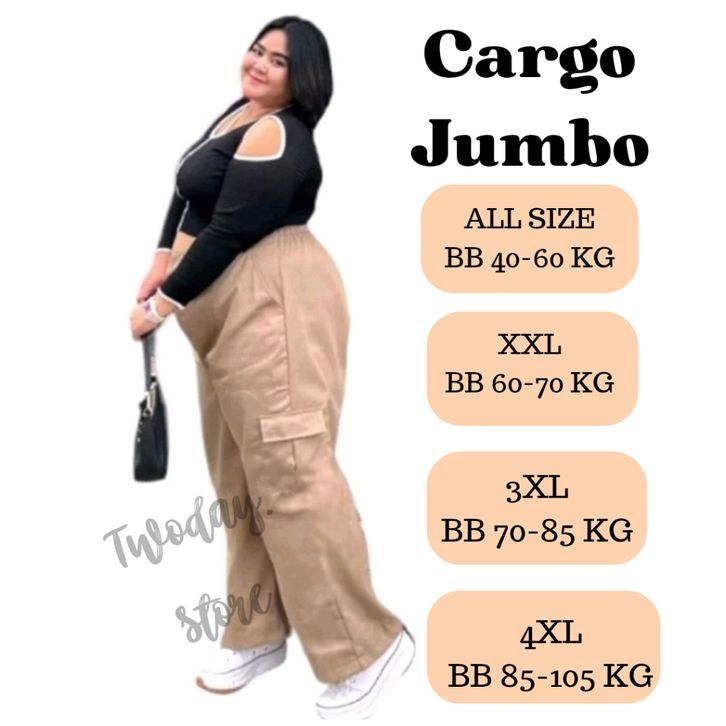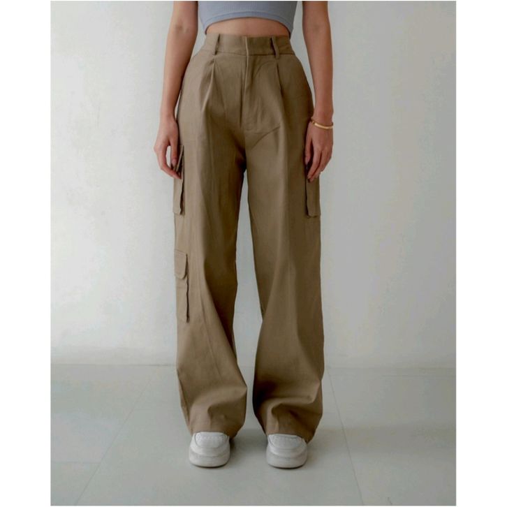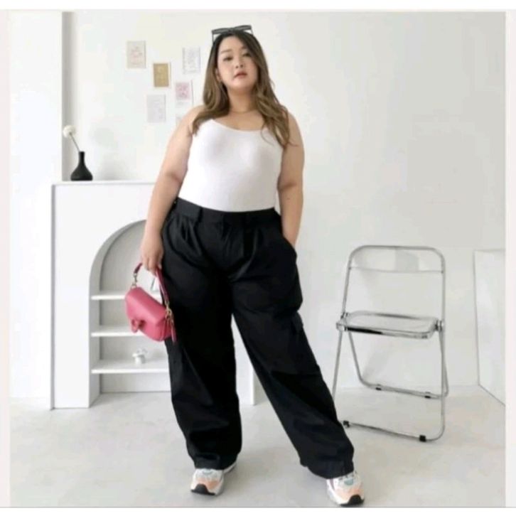 Celana Kargo Wanita Jumbo Kiya Highwaist Premium Loose Korean Style Tidak Nerawang Adem Anti Kusut - Cargo Pants