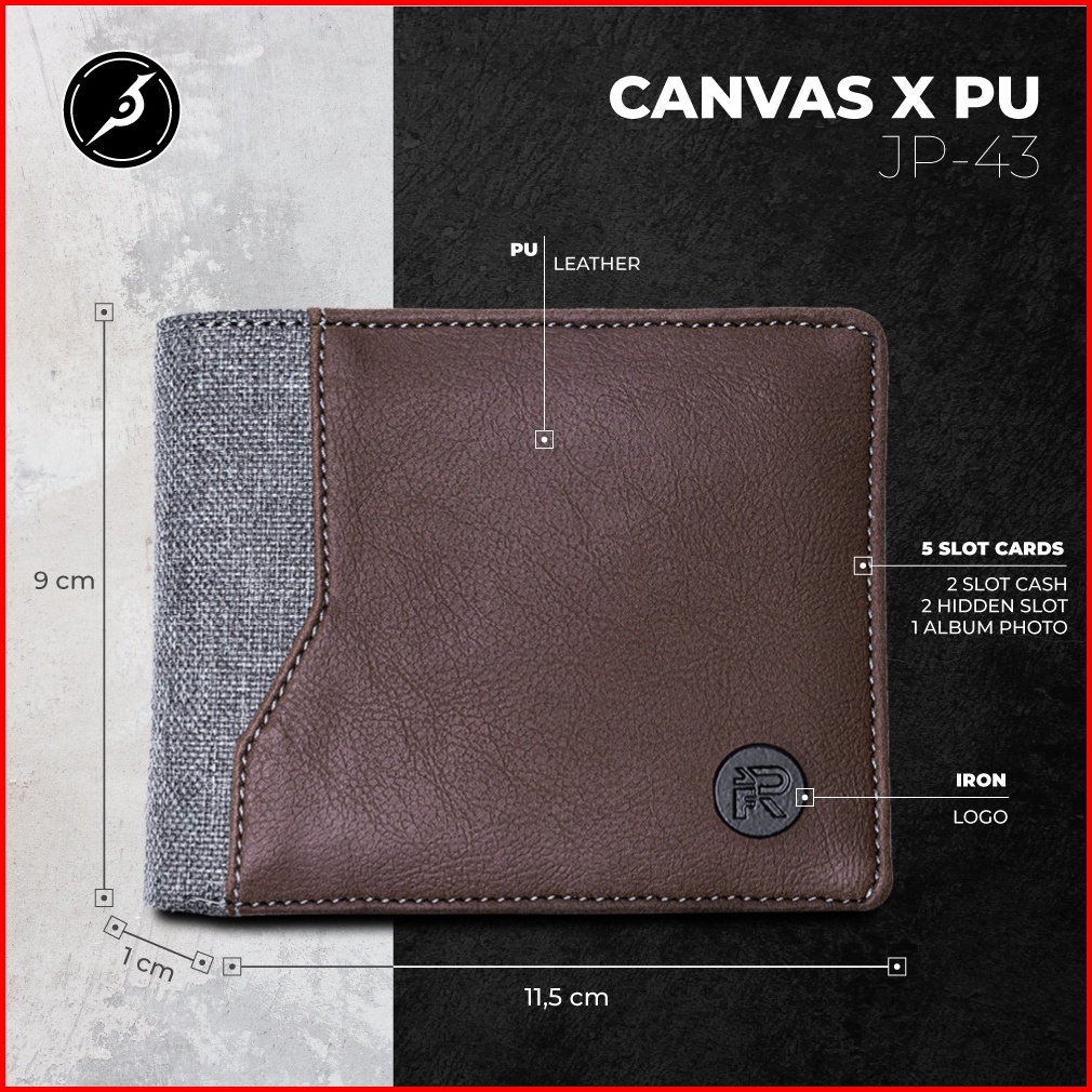 Jfr Strand Wallet - Dompet Pria Bahan Kanvas Kombinasi Kulit Pu Premium Jp43