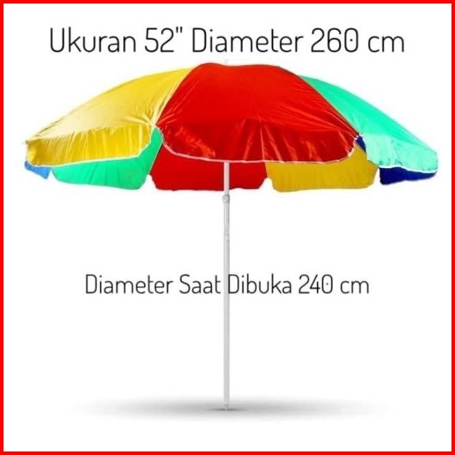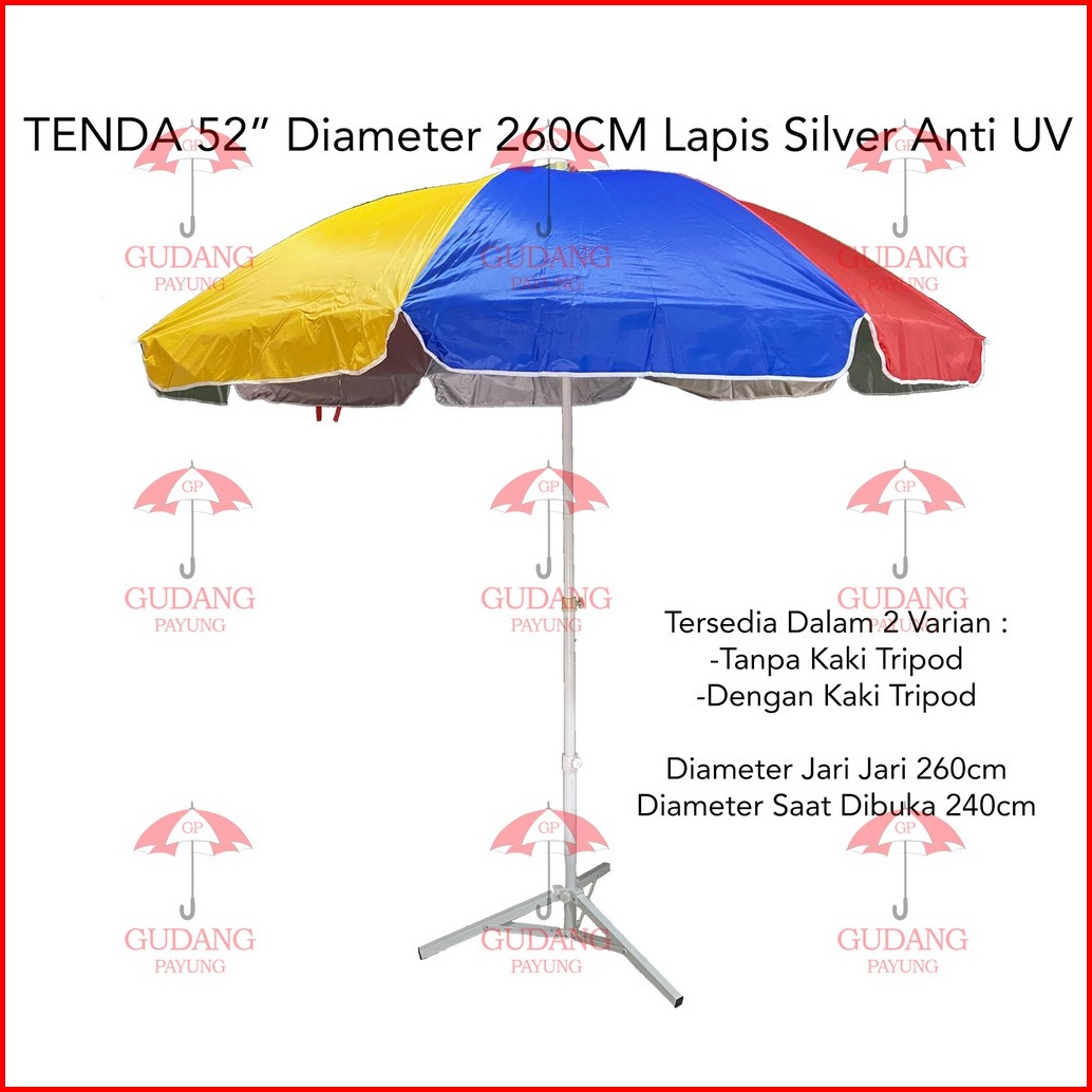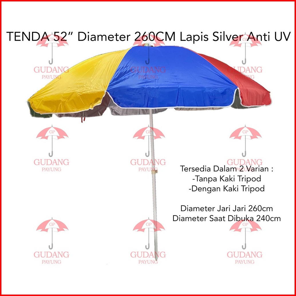Payung Tenda Pantai Jualan 52 Inch Diameter 260 Cm Anti Uv Dalam Lapis Silver