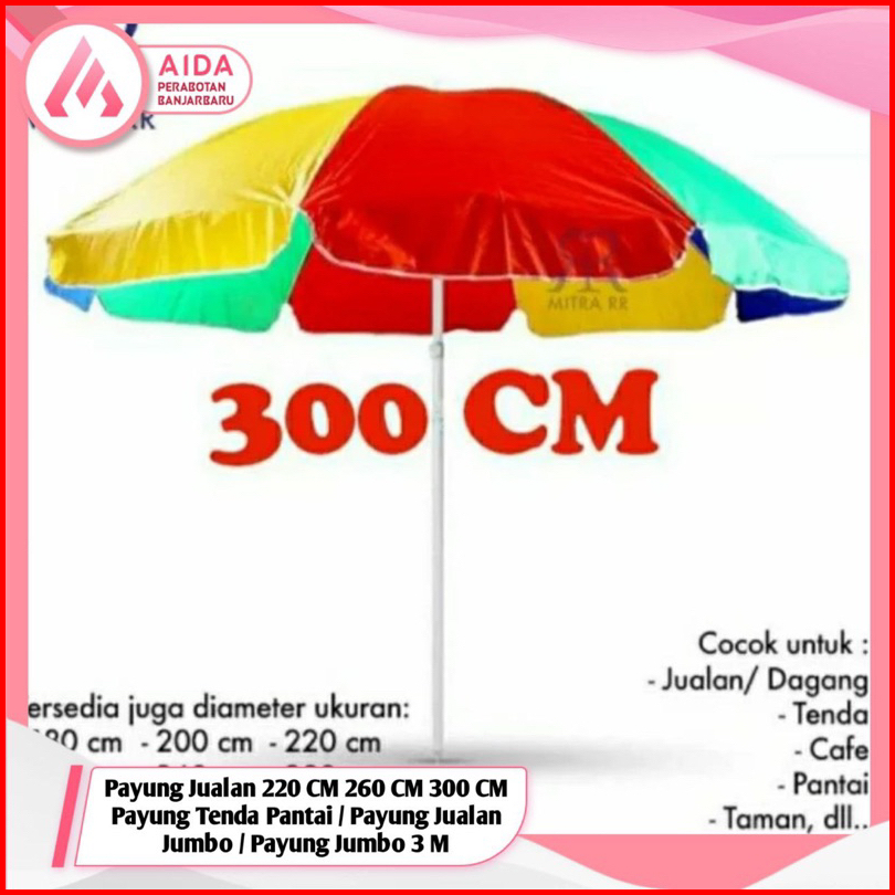 Payung Jualan 220 Cm 260 Cm 300 Cm Payung Tenda Pantai Payung Jualan Jumbo Payung Jumbo 3 Meter Payung Jumbo Pelangi