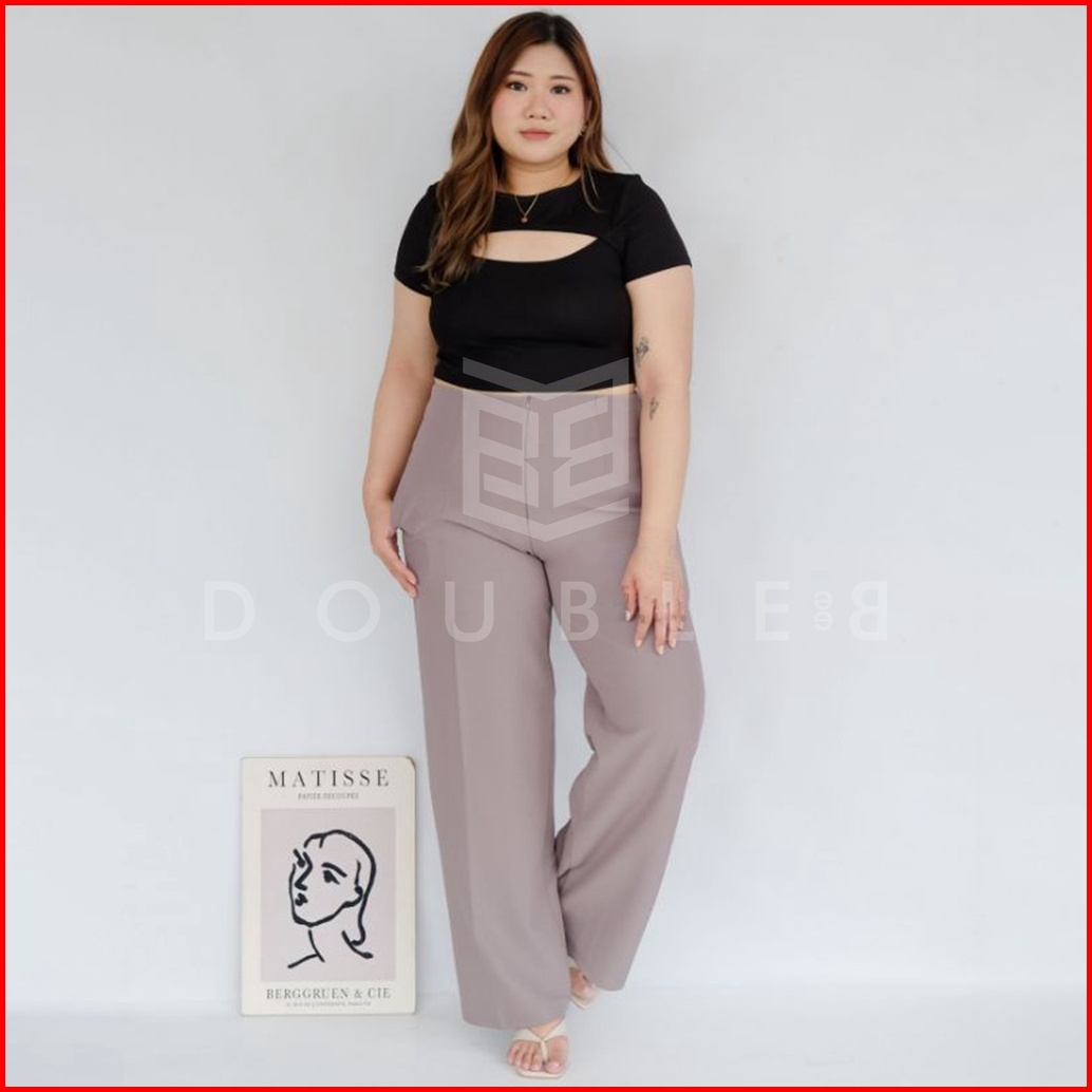Celana Wanita Kulot Highwaist Jumbo Polos Non Stripe Terbaru Kekinian Viral Korean Style Bahan Scuba Premium Tebal Dan T