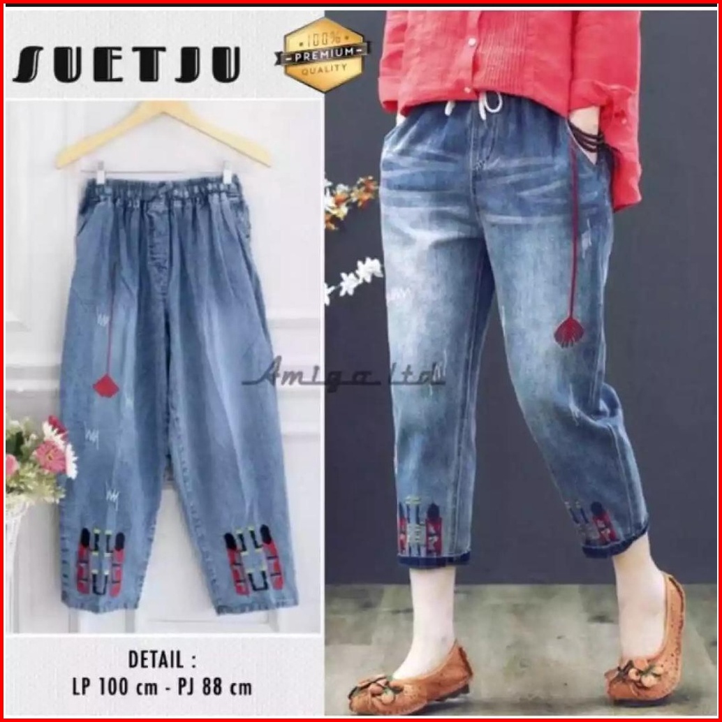 Celana Jins Wanita Terbaru Baggy Jeans Terlaris Kekinian Branded Culote Haruka Termurah Jeans Bordir